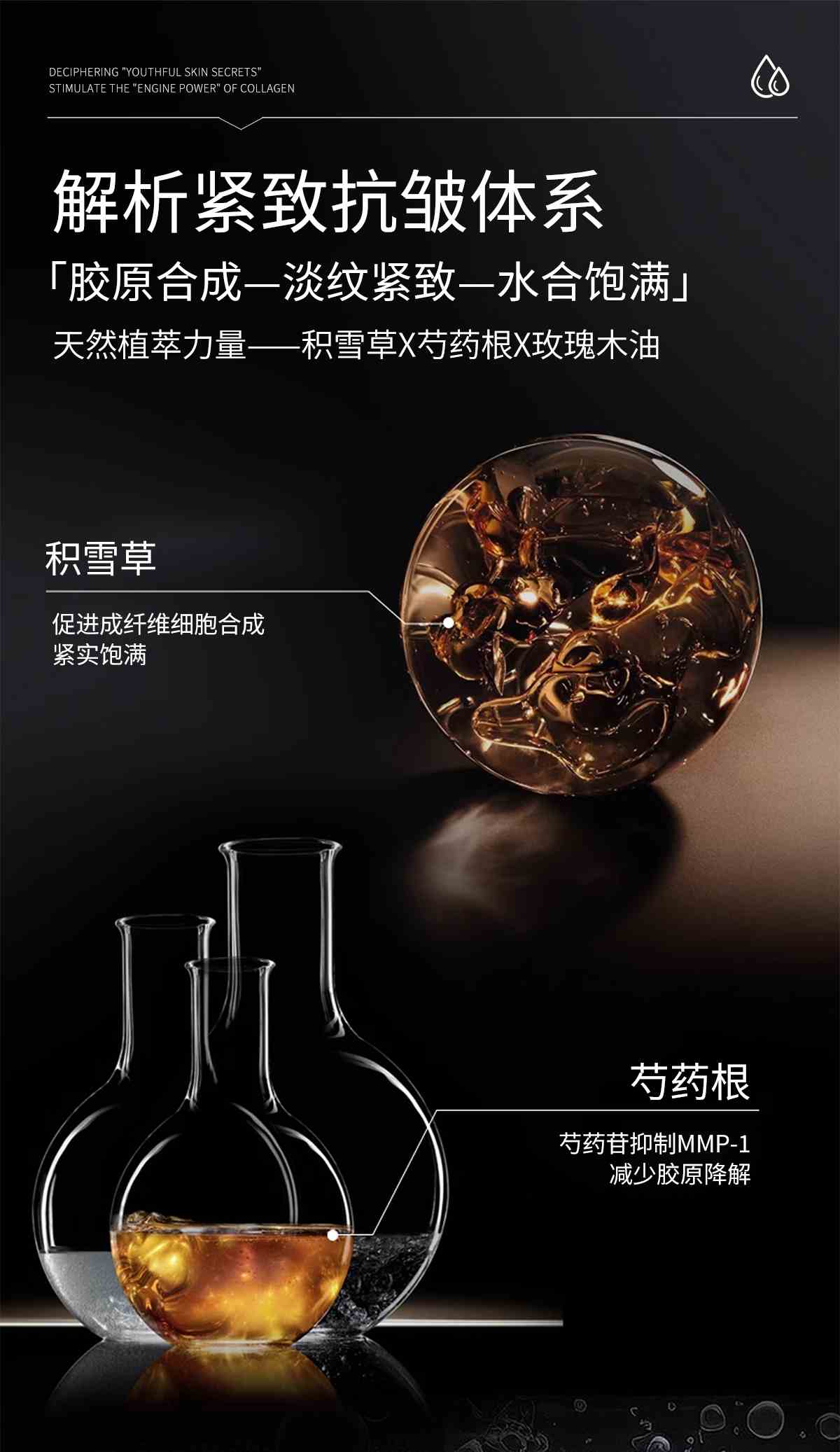 功效: 深促胶原 抗皱紧致 透明质酸钠锁水补水打造沁润水光肌