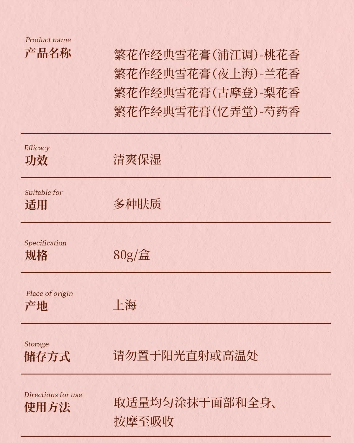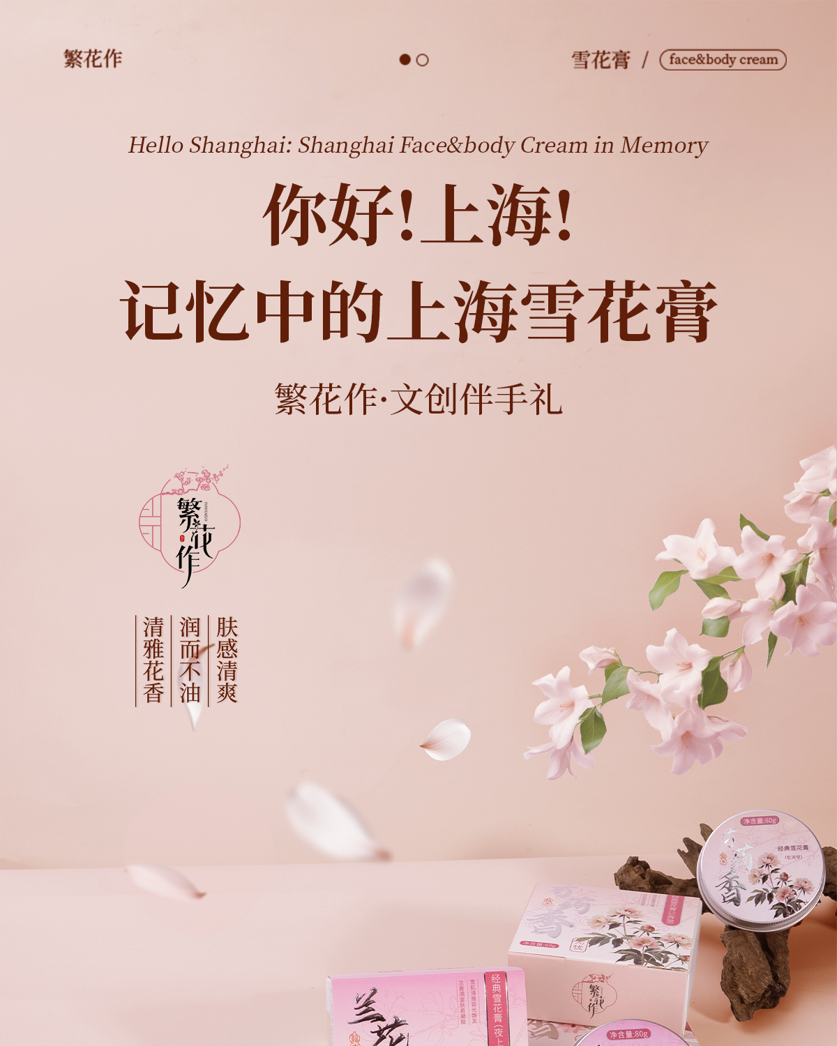 繁花作经典雪花膏单盒装80g
